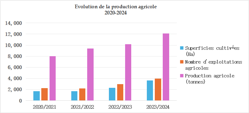 Dans le même temps, la production agricole a augmenté, atteignant 12 132 tonnes en 2024 contre